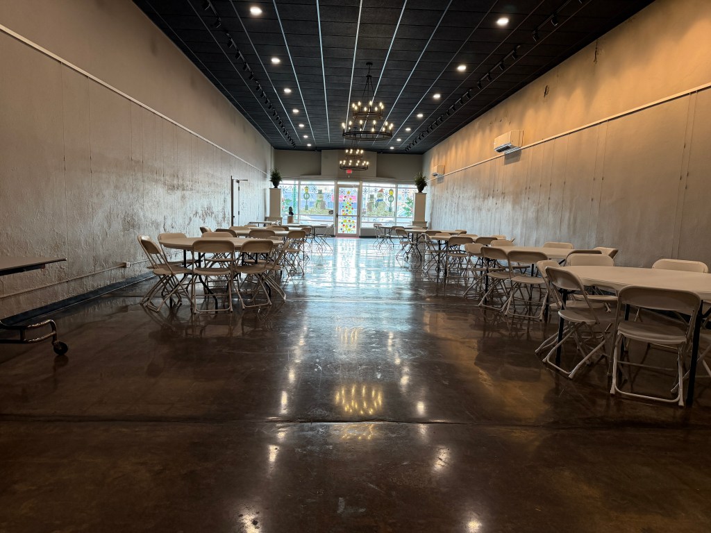 “The kitchen area was nothing but two black cords hanging from the ceiling,” Paladino said. “We had roasters hooked up and blew out the circuit breakers, so we knew from that point on we had to have something done if we were going to run a successful event venue.” The sudden darkness served as a comical but frustrating reminder of how much work remained to transform a derelict hardware store into a functional community space.